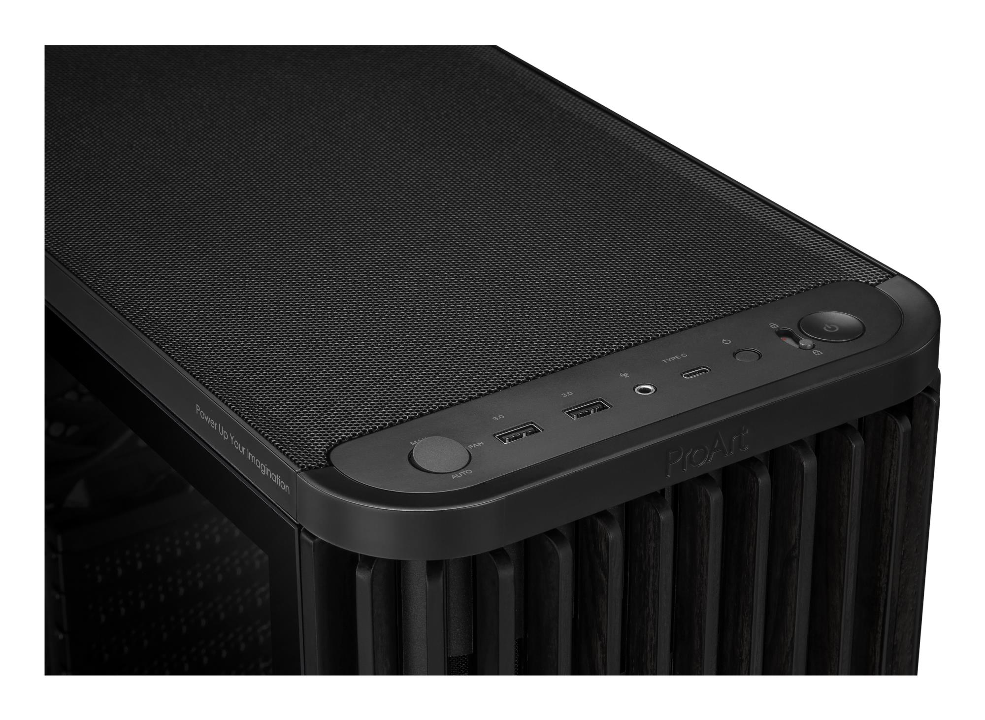 The ProArt PA401 Wood Edition showcases a wooden front panel that creates a distinctive, elegant style while promoting sustainability. The wood used is certified by the Forest Stewardship Council® (FSC®), and is finished using a six-stage process. The case also boasts optimal built-in cooling, with two 160mm front fans and one 120mm rear fan, along with an integrated fan hub, enabling optimal airflow.