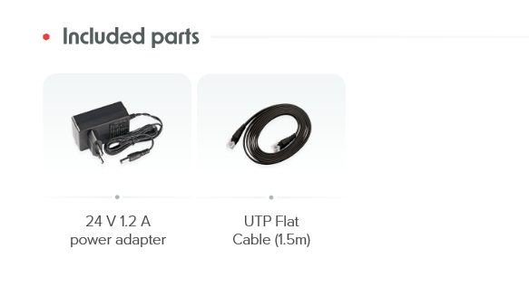 | Dėžės turinys | 24 V 1.2 A power adapter + UTP Flat Cable (1.5m) |