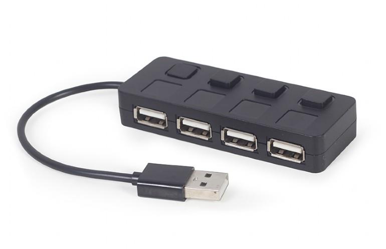 USB 2.0 4-port hub with switches, black