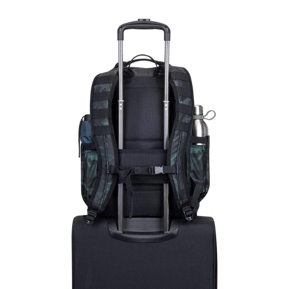 • Trolley strap easily attaches the rucksack to any rolling luggage.