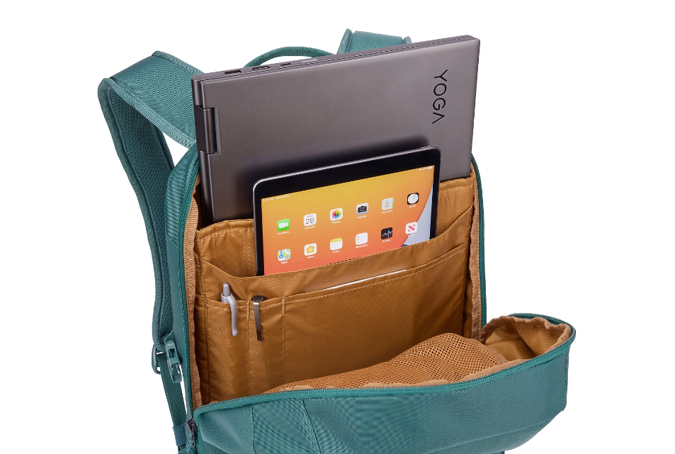 Kitos savybės | Elevated, dedicated pockets protects up to a 15.6 laptop and up to a 10.5″ tablet; Roomy zipped mesh pocket stretches to add volume to store electronic accessories and other personal items; Mesh exterior side pocket allows you to store a water bottle quickly; Dedicated interior pockets make it easy to store small accessories and pens |