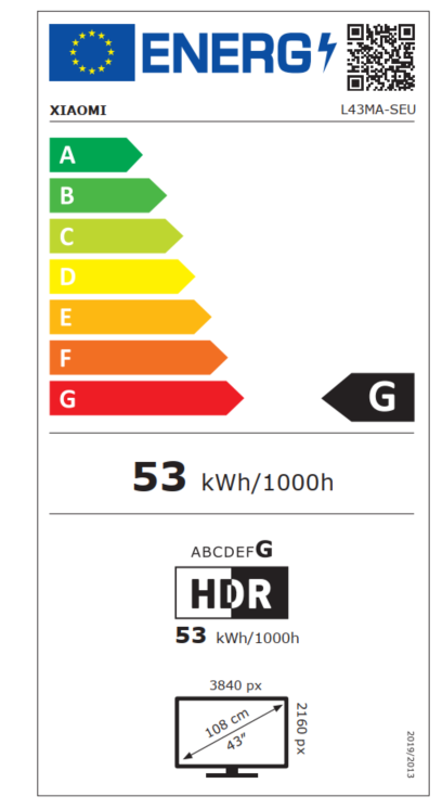 | Ekrano įstrižainė | 43” |